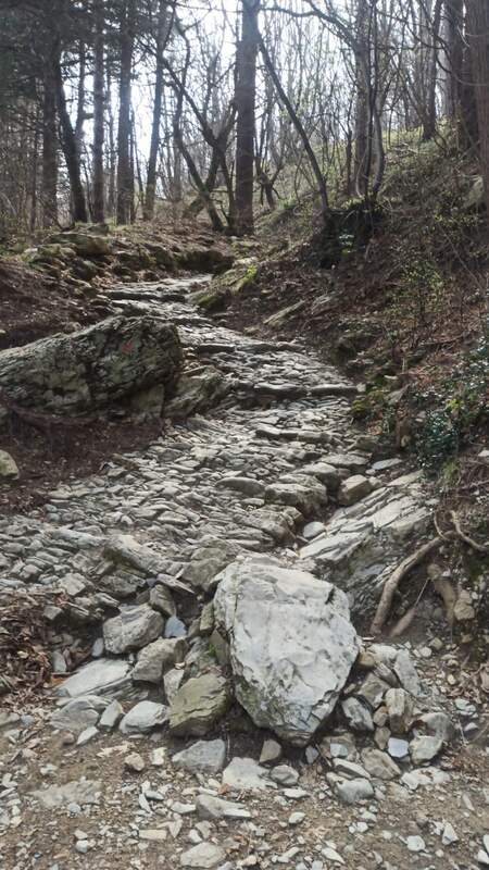 Il percorso ad anello che abbiamo scelto per l’escursione ha inizio dalla stazione a monte della funicolare del Righi. Oltrepassato il forte Castellaccio, si percorre fino a Trensasco la strada dell’acquedotto del Val Noci. Nella prima parte l’ampia strada sterrata è circondata da una macchia mediterranea collinare, caratterizzata dalla presenza di leccio, roverella, ginestra, erica. Successivamente si attraversa una zona boscosa dove si trovano i resti di una neviera e quelli di un’antica mulattiera. Raggiunta la colla di Trensasco si sale per un sentiero diretto e piuttosto ripido fino al Forte Diamante costruito su un’altura da cui si dominano la Val Polcevera e la Val Bisagno