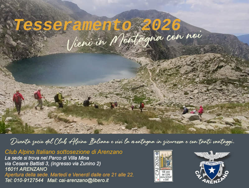 Per informazioni e prenotazioni contattare il CAI – Sottosezione di Arenzano, con sede nel Parco Villa Mina, Via Cesare Battisti 3 (di fronte alla Chiesa di SS Nazario e Celso).