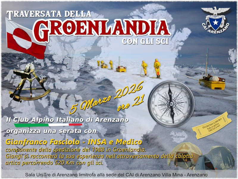Componente della spedizione “Traversata della Groenlandia con gli sci” del 1988 ci racconterà la sua esperienza dell’attraversamento della calotta artica percorrendo 520 Km con gli sci e mostrerà le fotografie scattate durante la spedizione.