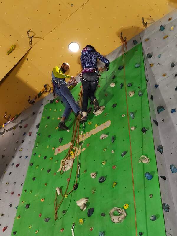 Le guide alpine Pietro e Alice durante lo stage in palestra