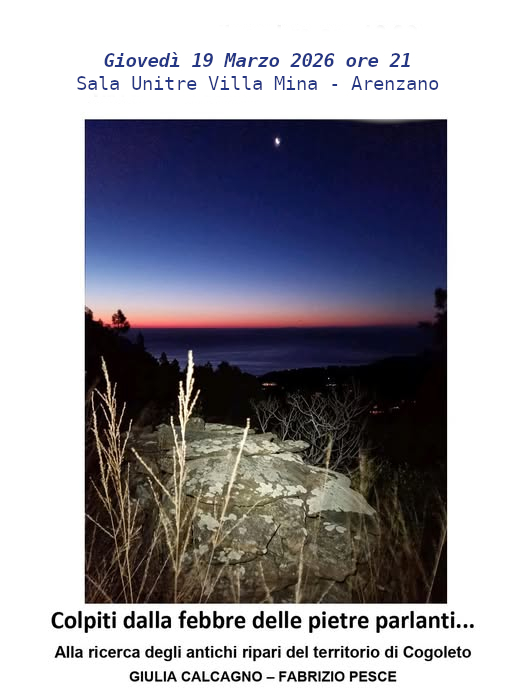 Serata presentazione libro “Colpiti dalla febbre delle pietre parlanti” di Giulia Calcagno e Federico Pesce giovedì 19 marzo alle ore 21 presso UNITRE villa Mina – Arenzano